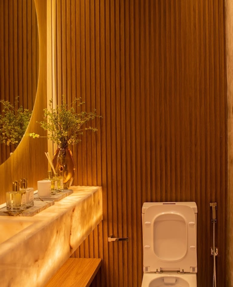 Ambientes pensados com rigor estético e atenção aos detalhes na escolha dos materiais.
